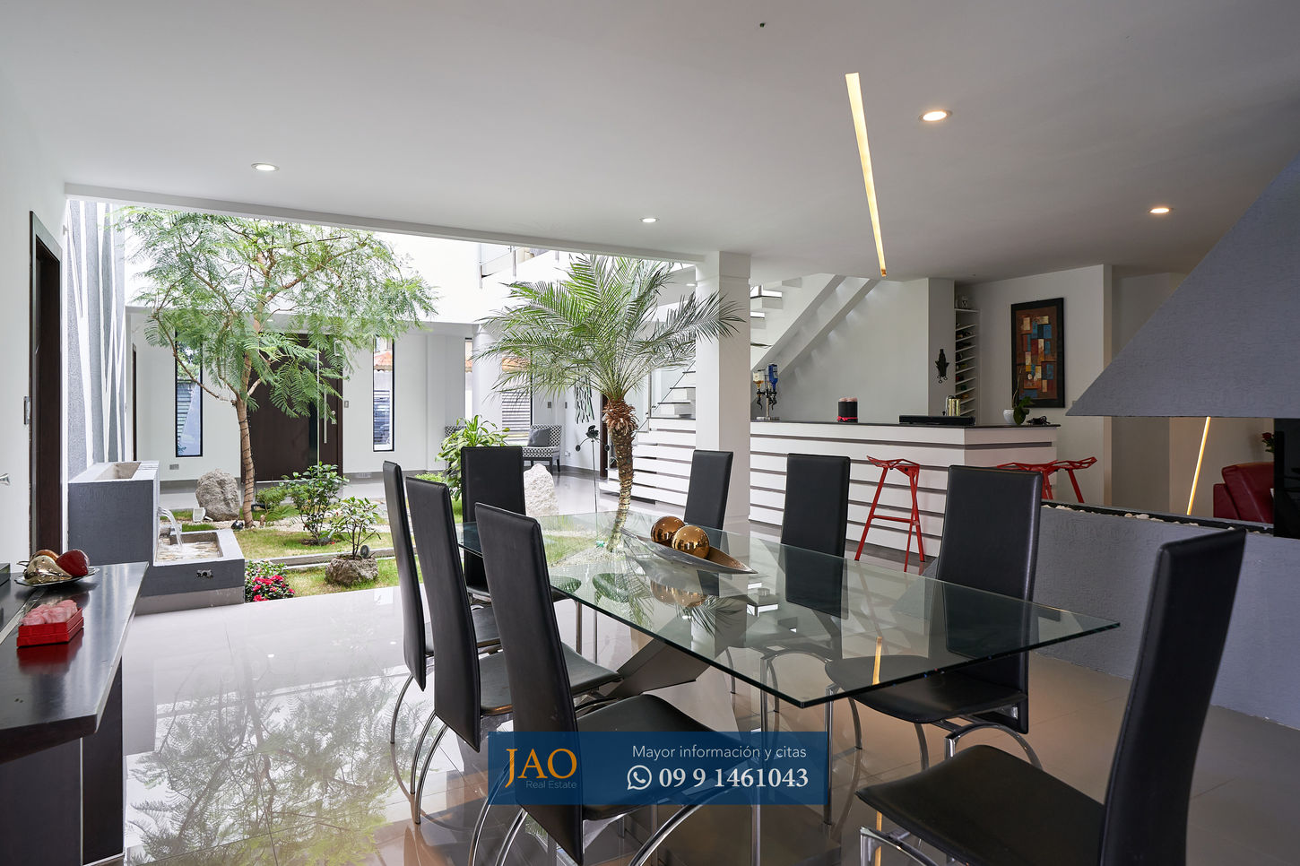 Patio interior con doble atura techo corredizo
